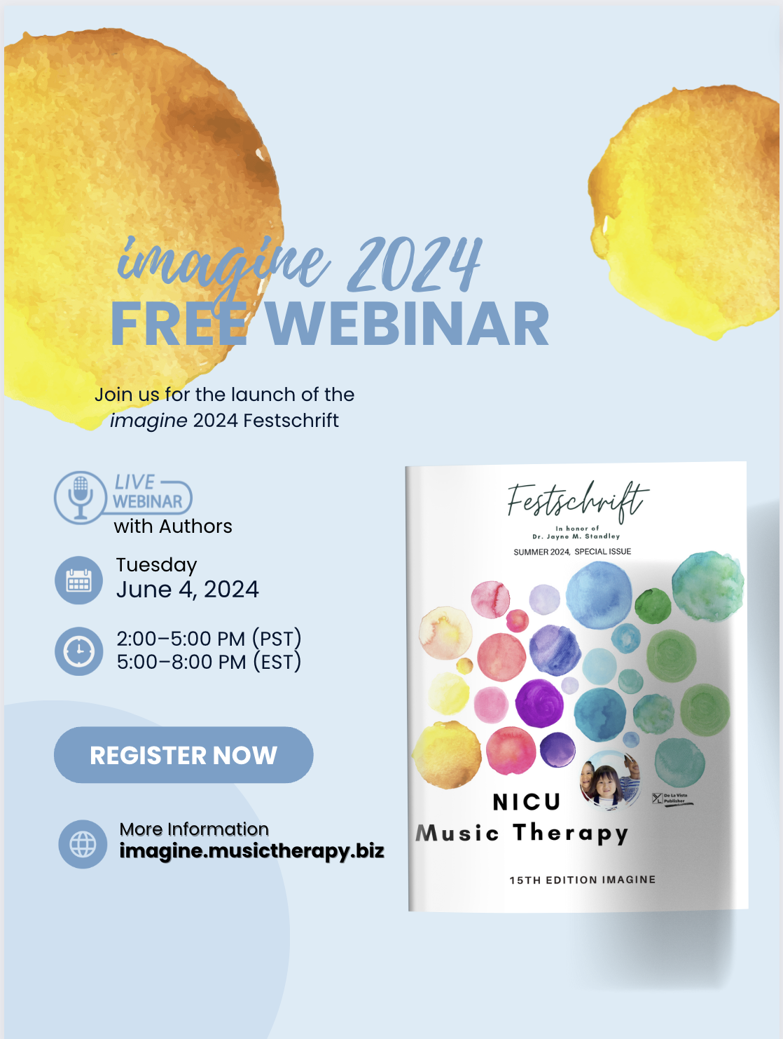 imagine 2013 keys into evidence-based practice. Learn about research outcomes that support the effectiveness of early childhood music therapy services, experts’ experiences and strategies of implementing assessment tools, and innovative interventions while honoring families’ values, beliefs, and preferences.